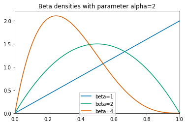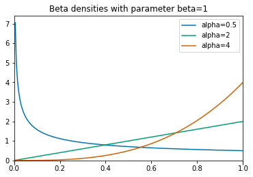 $$ \Gamma(\alpha) = \int_0^\infty e^{-u}u^{\alpha - 1}\, du, \quad \text{with } \Gamma(k) = (k-1)! \text{ if $k$ is a positive integer} $$Note that the Beta distribution with $\alpha = \beta=1$ is the Uniform(0, 1) distribution.