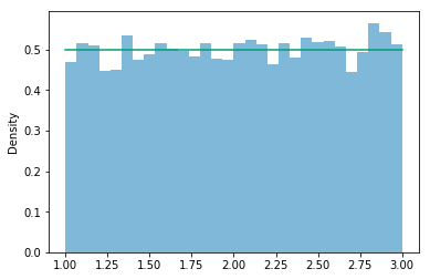 print('The true mean is: {:.2f}'.format(Uniform(a=1, b=3).mean()))