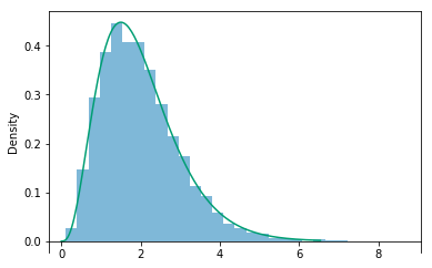 print('The true mean is: {:.2f}'.format(ChiSquare(df=2).mean()))