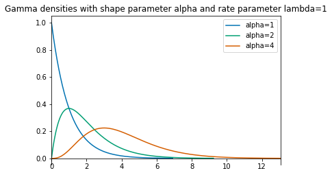 $$ f(x) = \frac{\lambda^\alpha}{\Gamma(\alpha)} e^{-\lambda x} x^{\alpha -1}, \quad x>0, $$where