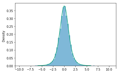 (Z / sqrt(Y / d)).sim(10000).plot(bins=60)