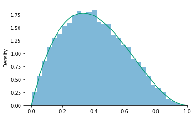 print('The true mean is: {:.2f}'.format(Beta(a=2, b=3).mean()))