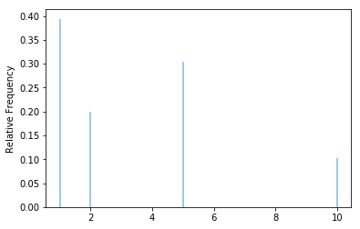 P = BoxModel([1, 2, 5, 10], probs=[0.4, 0.2, 0.3, 0.1])