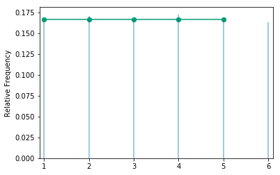 print('The true mean is: {:.2f}'.format(DiscreteUniform(a=1, b=6).mean()))