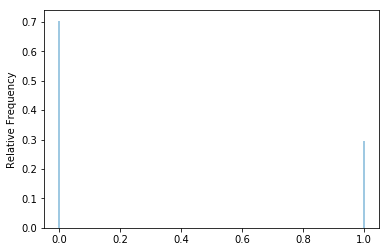 RV(Bernoulli(0.3)).sim(10000).plot()