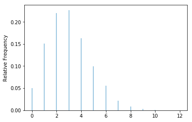 RV(Poisson(3)).sim(10000).plot()