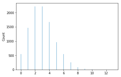 RV(Poisson(3)).sim(10000).plot(normalize=False)
