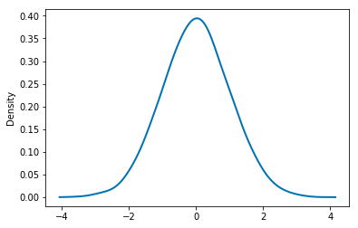 Example. Density plot of simulated values of a random variable with a Normal(0, 1) distribution.