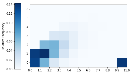 Two dimensional histograms can be also produced for two discrete random variables.