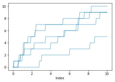 X.sim(5).plot(alpha=0.5)