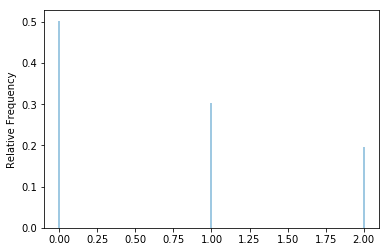 X[1.5].sim(10000).tabulate(normalize = True)