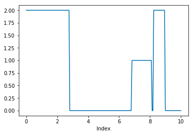 As for discrete time Markov chains, the state space for a continuous time Markov chain can be any list of values (like ['cloud', 'rain', 'sun']). If state_labels are not specified, the default is to label the states 0, 1, 2, ... When the states are numerical values, plots can be created, and methods like .mean() and .sd() can be applied.